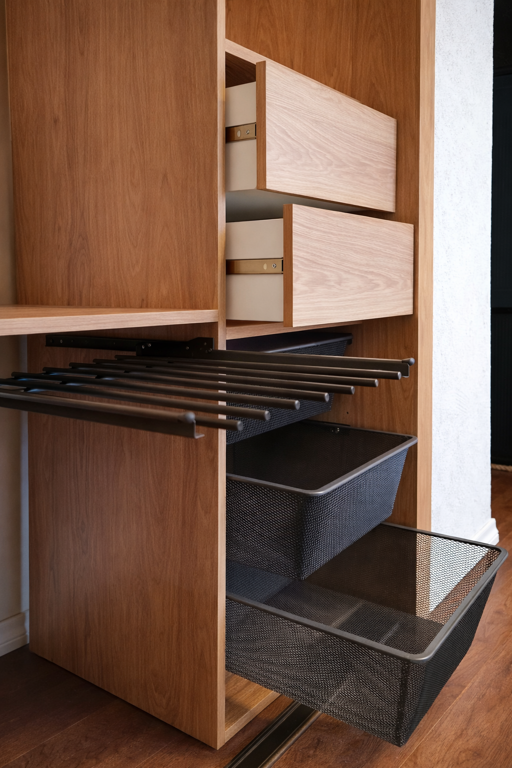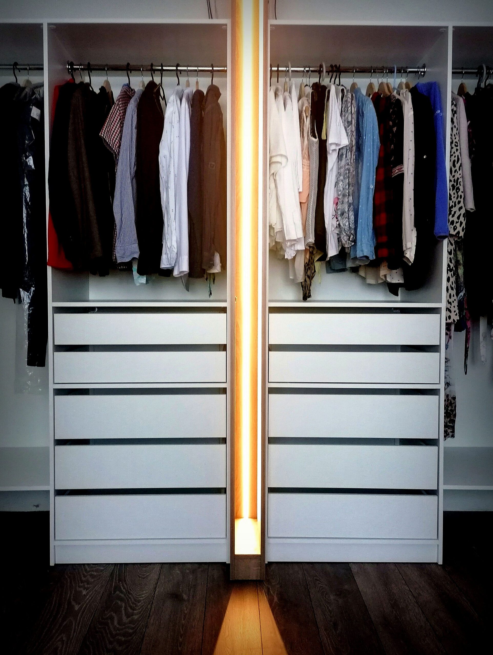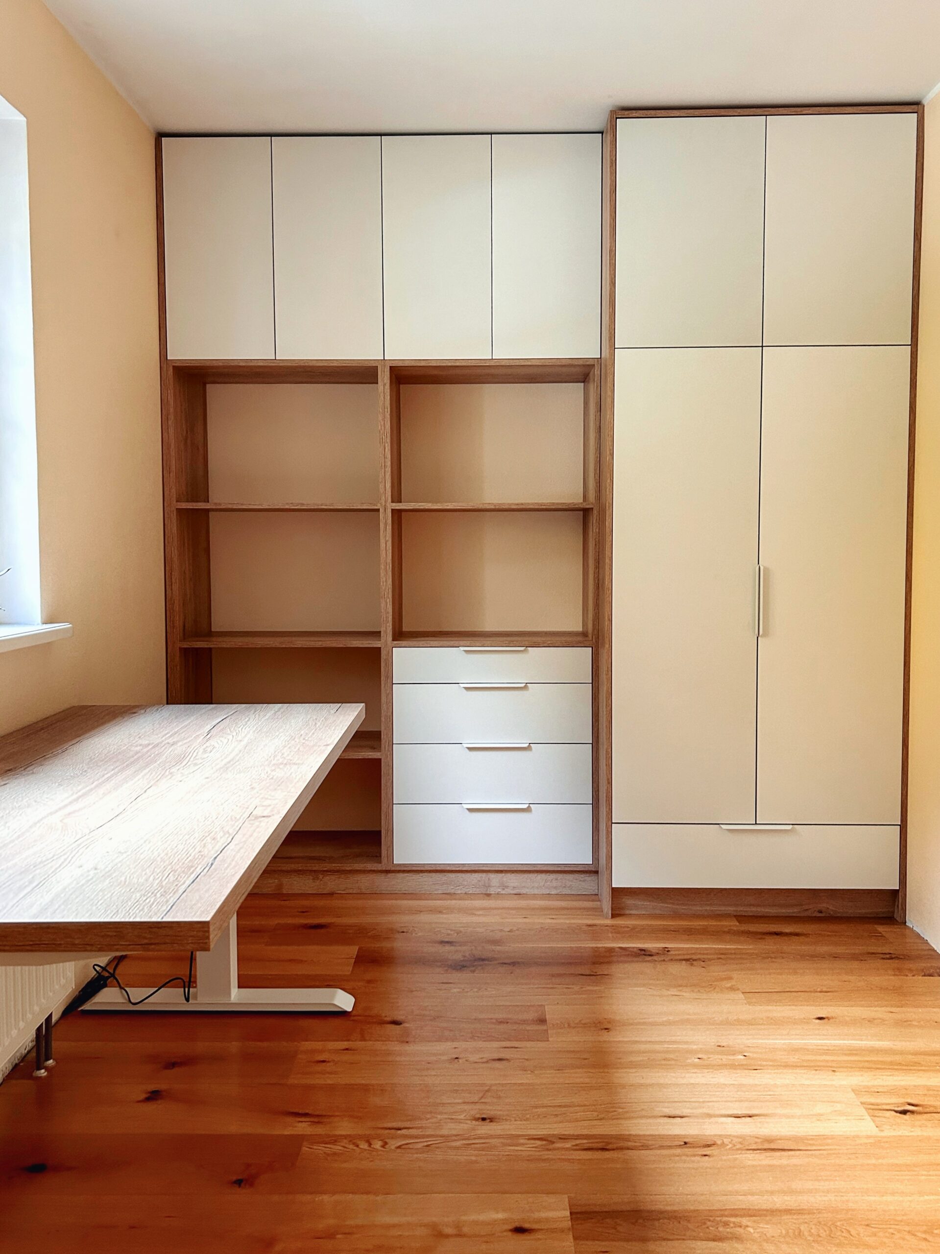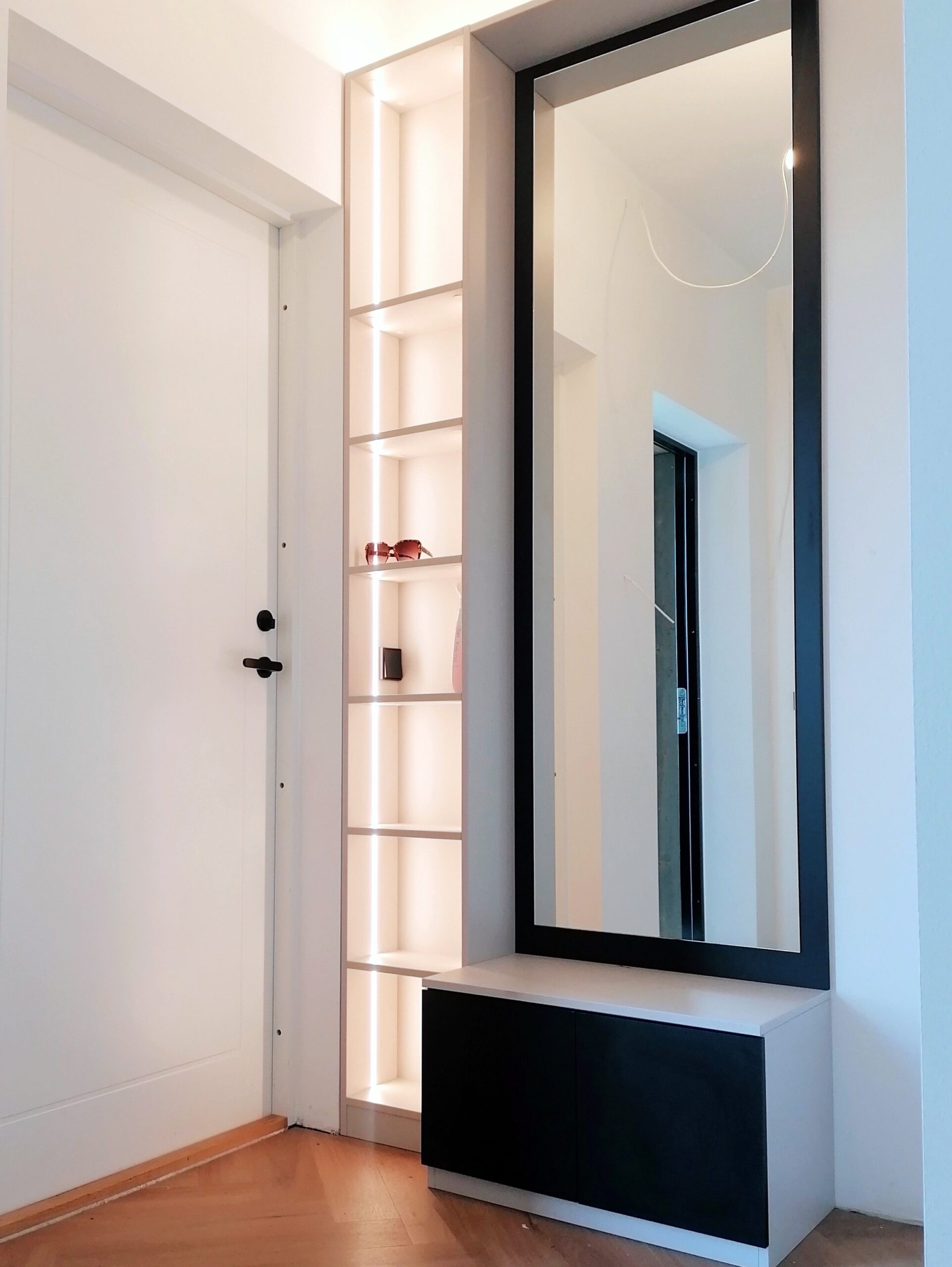 Väga ilus ja korralik töö, isegi vaatamata sellele, et tubade seinad olid veidi kõverad ja garderoobide paigaldamine nõudis mitmeid väljakutseid ja sobitamist. Ka materjalid on kenad ja lõpptulemus ilus ja esteetiline, praktilisusest rääkimata.